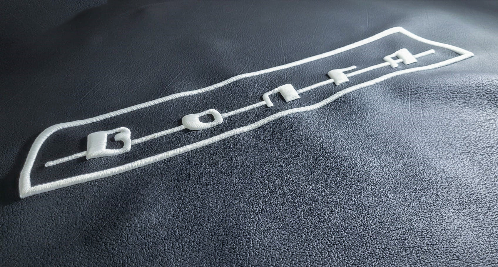 Das Logo kann je nach Wunsch auf verschiedene Kunstleder-Farbtöne und/oder verschiedene Garnfarben bestickt werden.